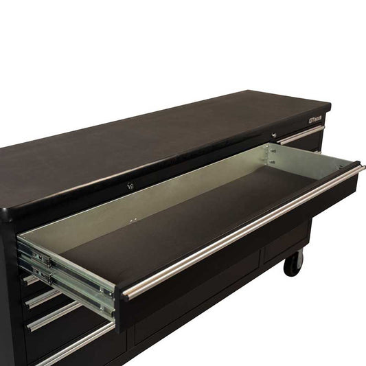 1.8M Black Powder Coated Steel Workbench, Mega Drawer Rolling Tool Chest