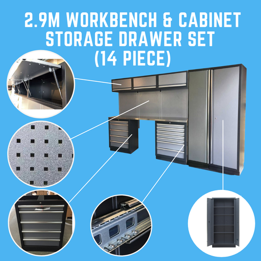 3.9M Workbench, Tool Drawers, Bin & 2 x Single Door Tall Cabinets Set - GT-Combo12